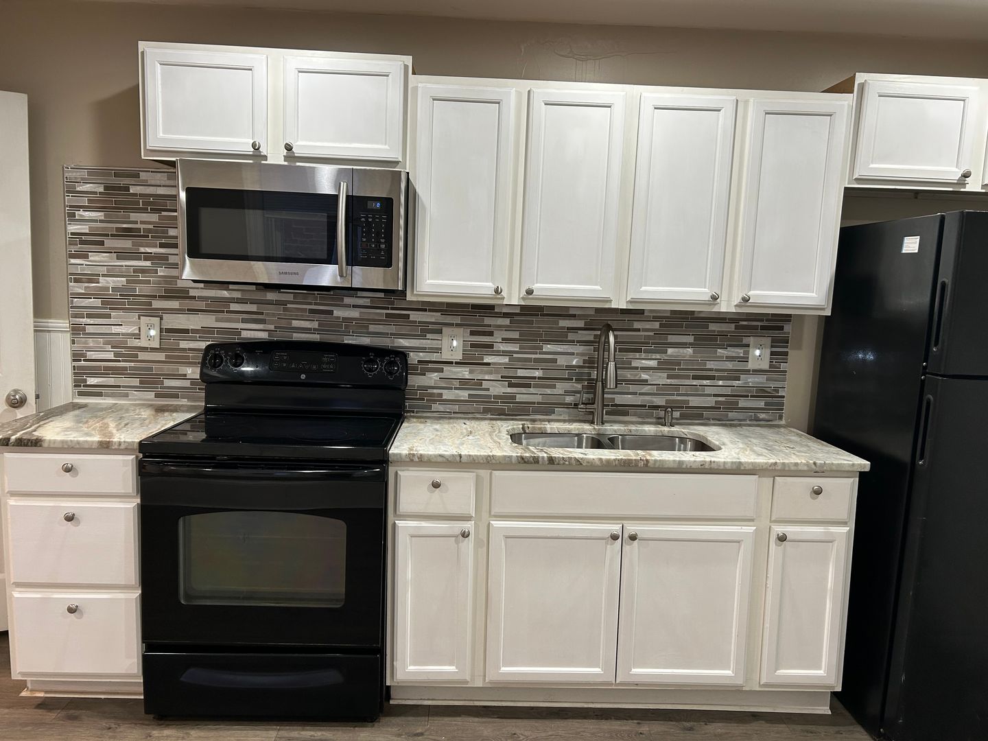 Included: refrigerator, stove, and microwave